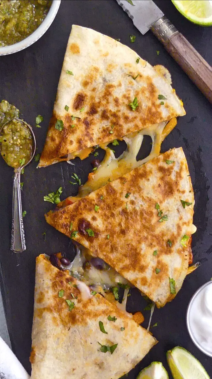 Crunchy, cheesy and oozing with flavor, this easy to prepare Black Bean Quesadilla is a go-to recipe in our home. It's the perfect lunch to make in advance, its adaptable to various fillings, and travels easily as well.