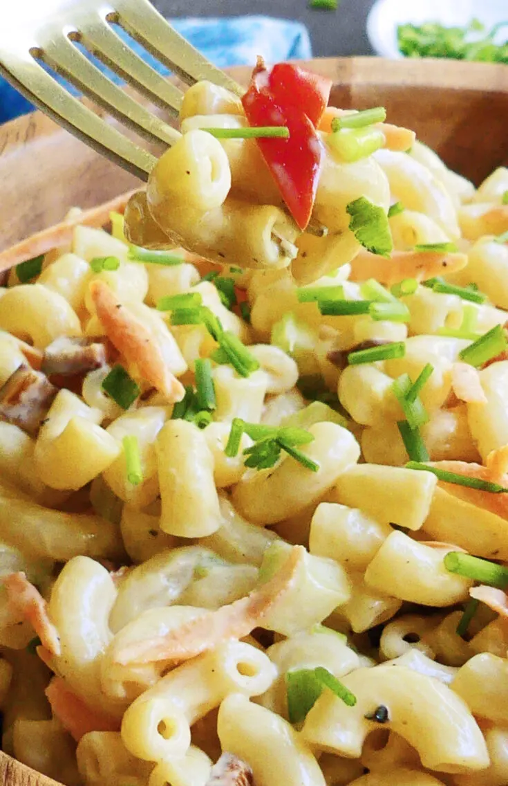 The perfect side dish with so many summer meals, this healthy and easy macaroni salad is super simple to prepare. We prefer our macaroni salad less creamy and a bit on the lighter side, making this recipe a bit healthier without sacrificing any of the flavor. It’s a summer salad you can feel great about making and eating as well! This amazingly easy macaroni salad takes under 10 minutes to prepare.